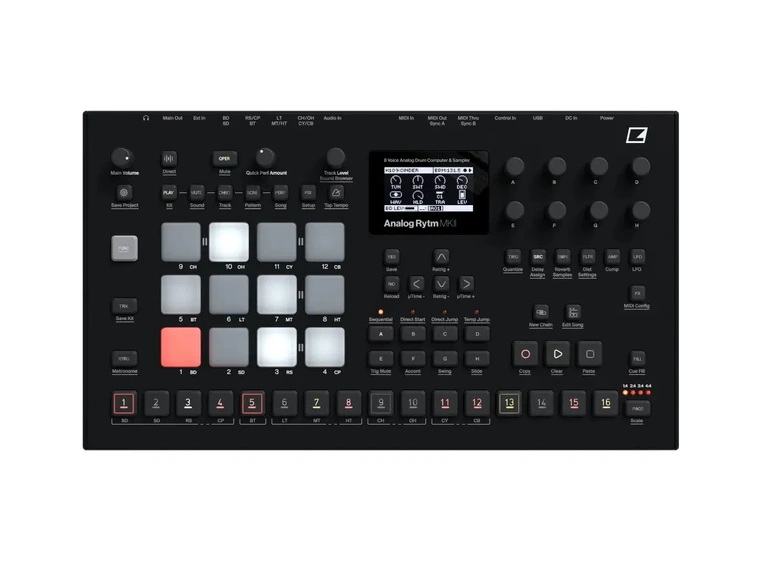 - Elektrons Legendariske Sequencer: Analog Rytm MKII drar nytte av Elektrons anerkjente trinnsequencer. Med funksjoner som Parameter Locks, Trig Conditions, Micro Timing og Swing, kan du programmere utrolig komplekse og dynamiske rytmer som føles levende og groovey.