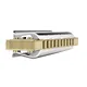 Sometimes the sound of a harmonica in regular tuning is just not fat enough to really counterbalance the power of guitar, bass and drums. Fitted with our patented bamboo comb, the Marine Band Thunderbird offers the perfect solution. It’s tuned one octave lower than standard harps and features an innovative tapered cover design to prevent reed rattle, inspired by the work of legendary harmonica customizer Joe Filisko. The lowest tuned diatonic model in our portfolio, it deliverers a powerful, rich sound that’ll make the floor shake. Experience a hitherto unknown dimension of deep-toned harmonica playing, let it carry you away into new sonic adventures, and reshape the perception of how the harmonica sounds.